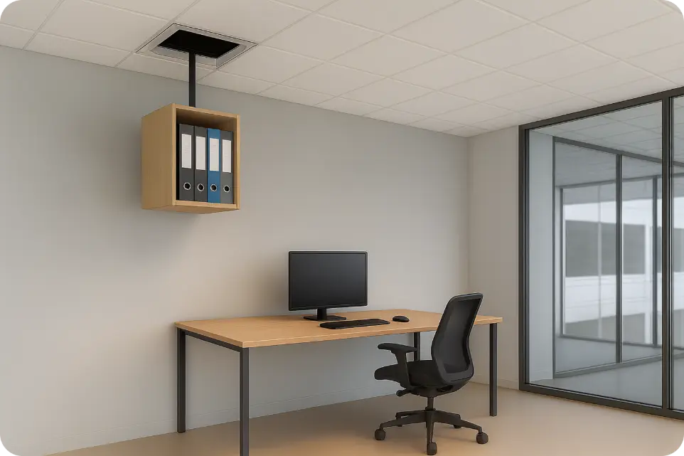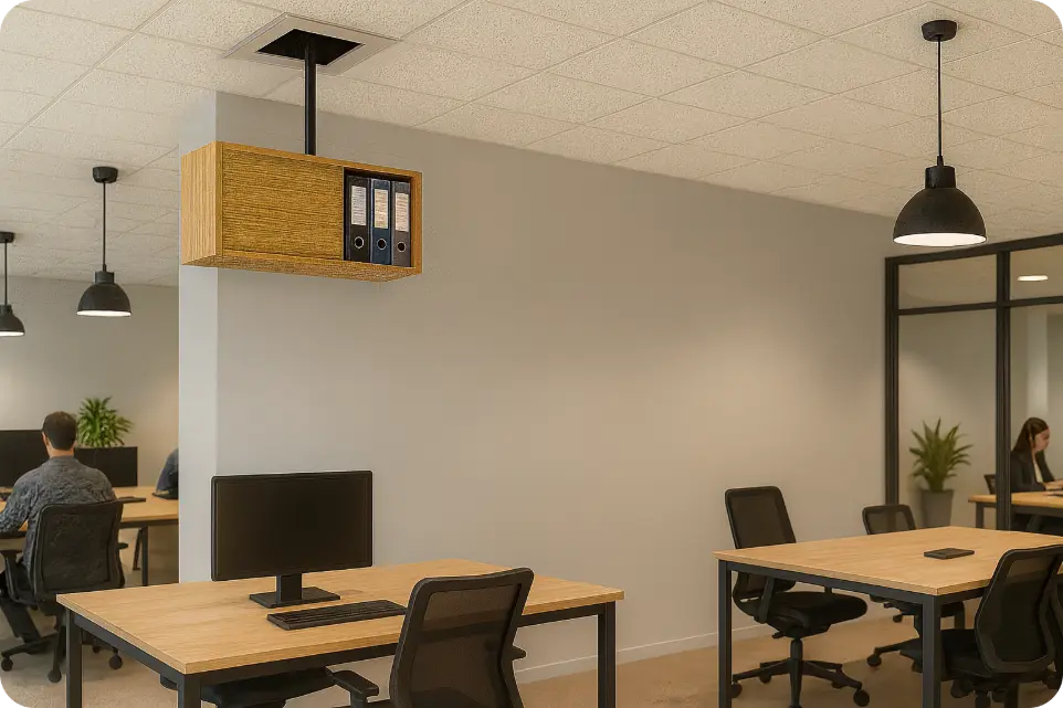 Avec Unlift, chaque personne réserve un caisson individuel au plafond, pour la journée ou la semaine et travaille comme si c’était son propre bureau. Les effets restent sécurisés et accessibles, les postes restent libres et ordonnés.