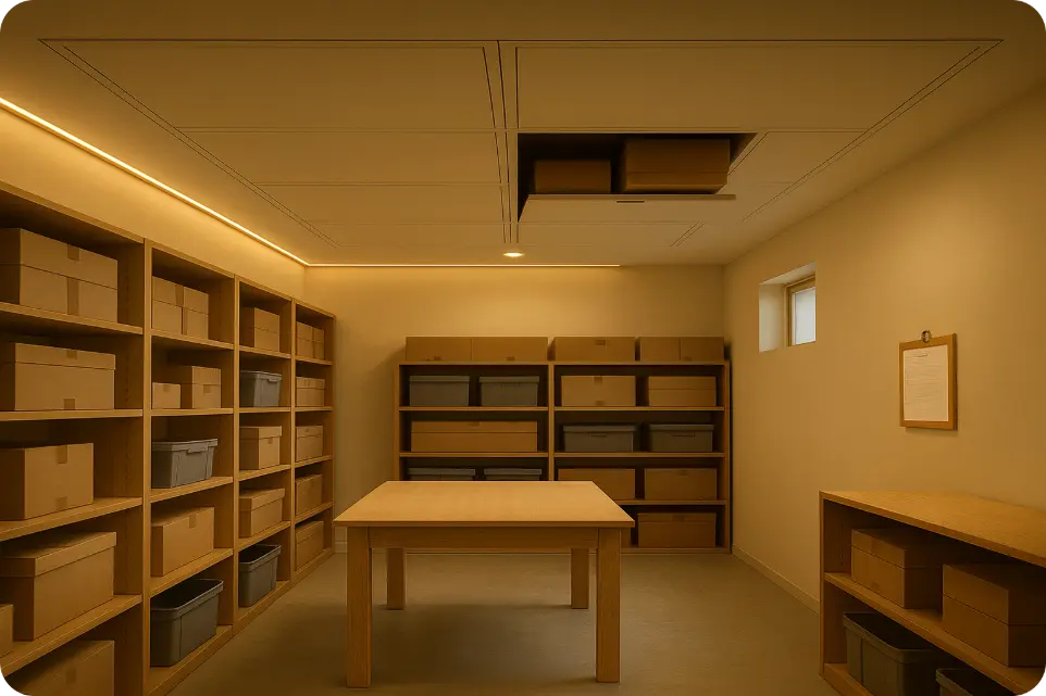 Grâce à la fonctionnalité de verrouillage des caissons par code, empreinte digitale ou reconnaissance faciale, gardez vos produits de valeur en sécurité au plafond !