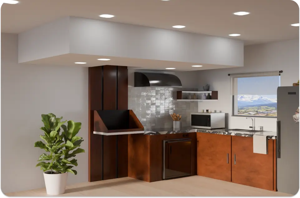 Dans vos conceptions, qu’il s’agisse de cuisines ouvertes ou de petites cuisines, notre solution vous permettra d'optimiser la place et de faciliter l'usage de l'équipement au quotidien.