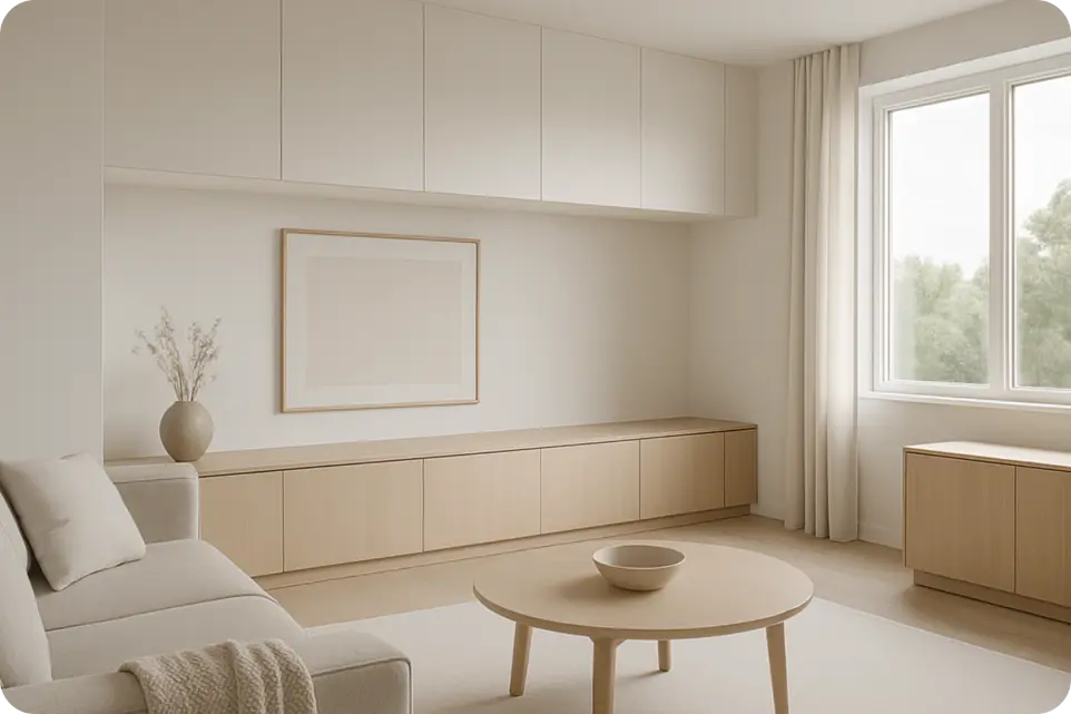 Avec un design minimaliste, les rangements deviennent un élément discret de l’architecture intérieure.